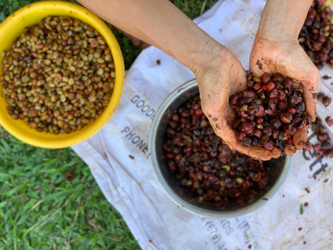 Once harvested, the cherries are dried for weeks by the tropical island sun on raised beds, slowly fermenting within the fruit.